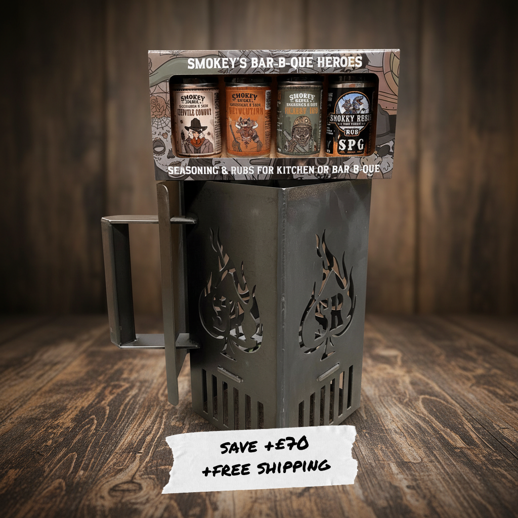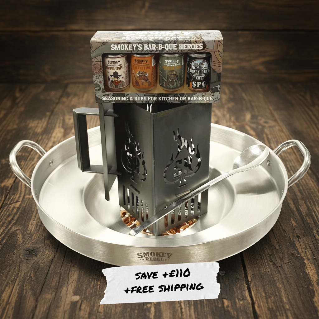 We also stock serious kit, including Rebel Grills fire pits and accessories, Yoder Smokers, wood pellets, sauces and gift sets, all backed by UK-based support.